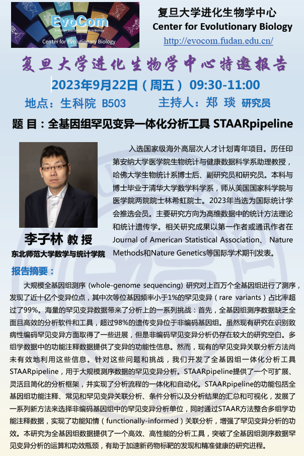进化生物学中心特邀报告,2023-09-22(周五)09:30,李子林 教 授(东北师范大学数学与统计国产无码)