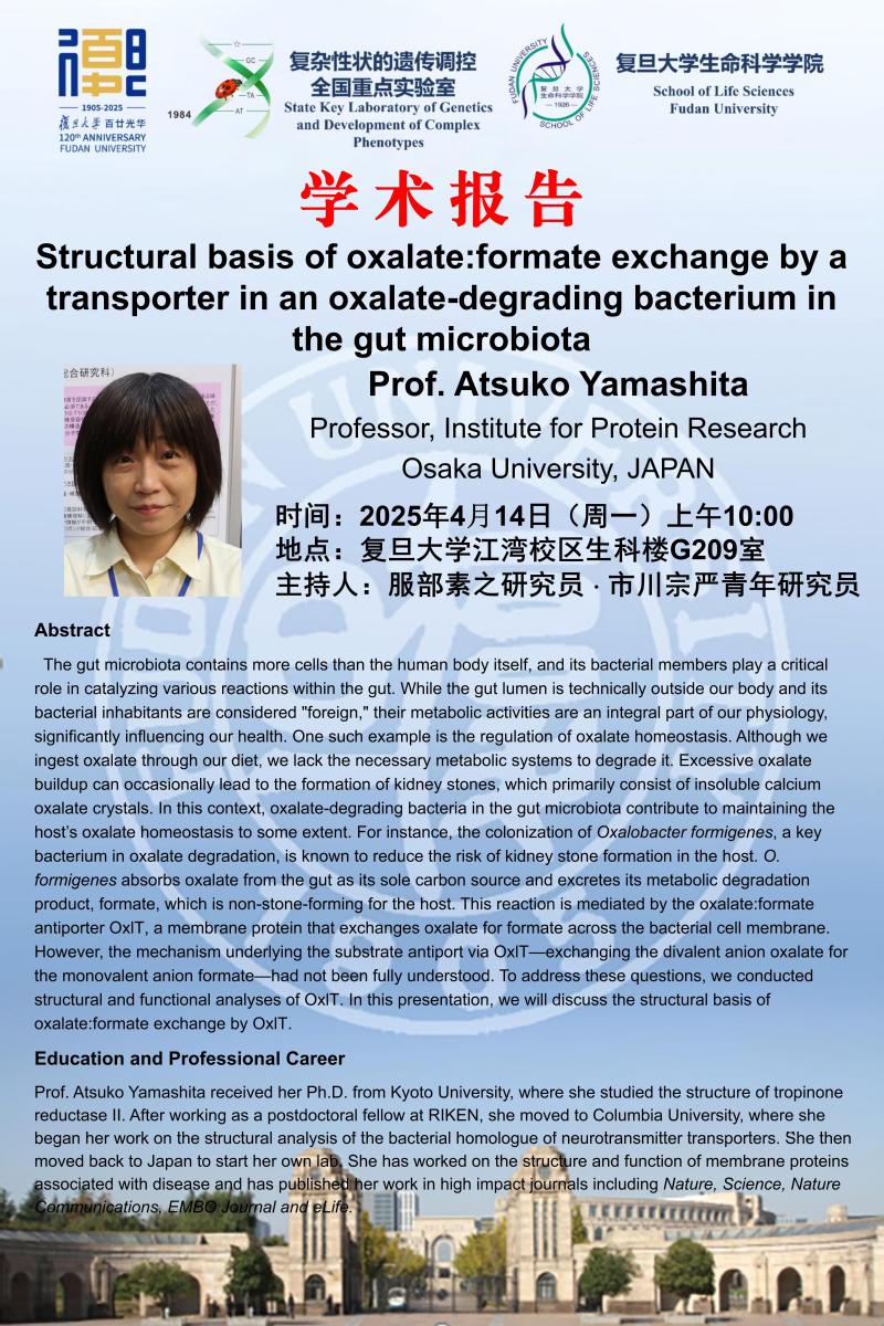 学系特邀学术报告--2025-4-14(周一)10:00,Prof. Atsuko Yamashita(大阪大学)
