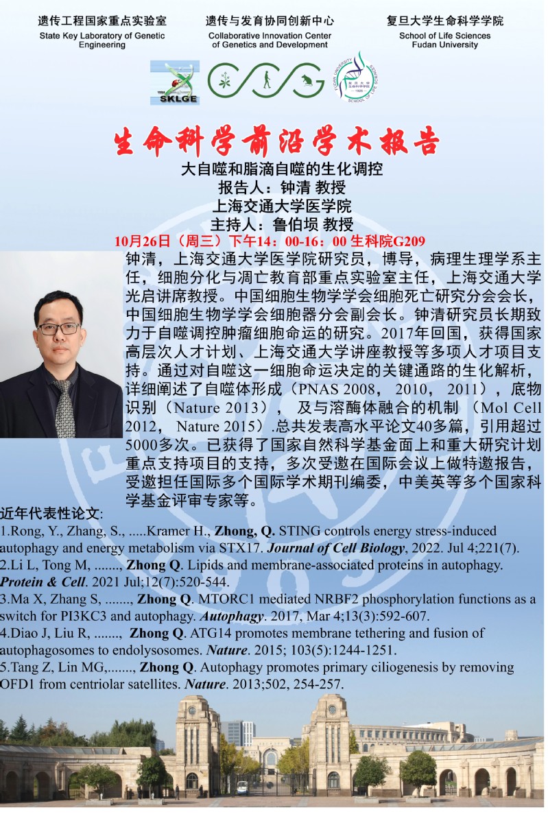 生命科学前沿学术论坛-2022-10-26(周三)下午14点,钟清 教授 (上海交通大学医国产无码)