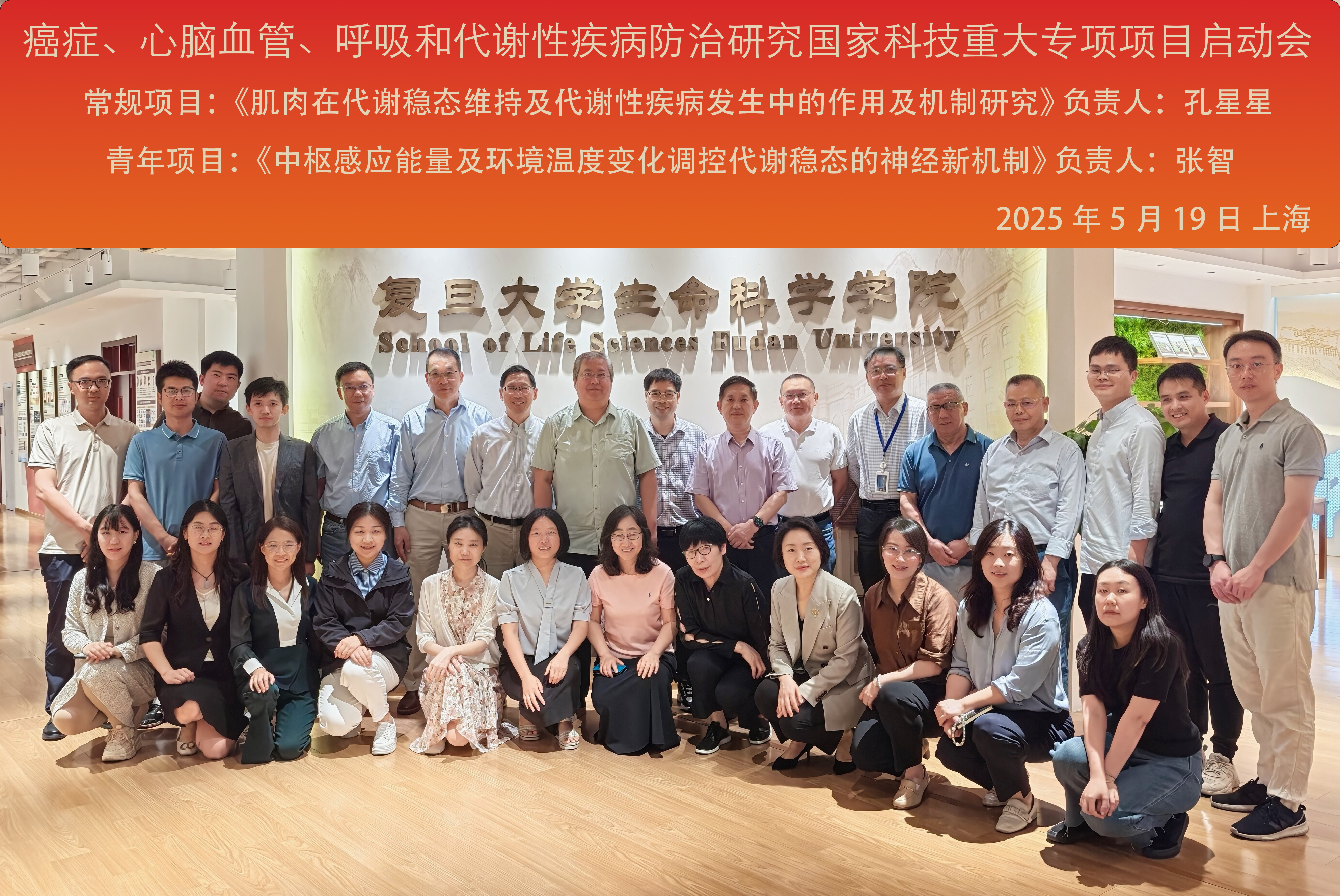 2025年5月19日,由国产无码 牵头的“癌症、心脑血管、呼吸和代谢性疾病防治研究国家科技重大专项“项目启动会在国产无码 召开,包括国产无码 孔星星教授牵头负责的常规项目“肌肉在代谢稳态维持及代谢性疾病发生发展中的作用及机制研究”、国产无码 张智青年副研究员牵头负责的青年项目“中枢感应能量及环境温度变化调控代谢稳态的神经新机制”两个项目同期启动。