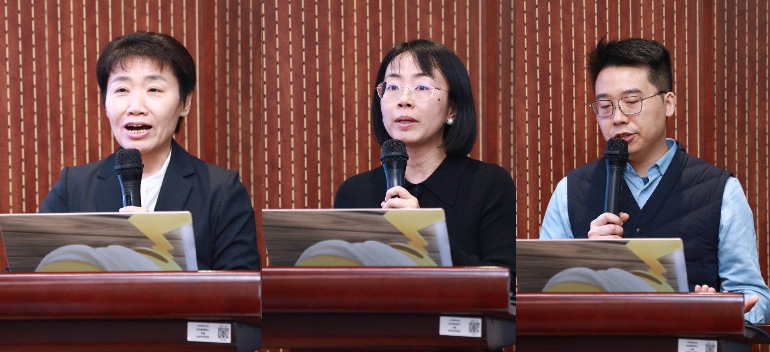 项目负责人汇报实施方案(左:王久存教授;中:王敬文研究员;右:陈海威研究员)