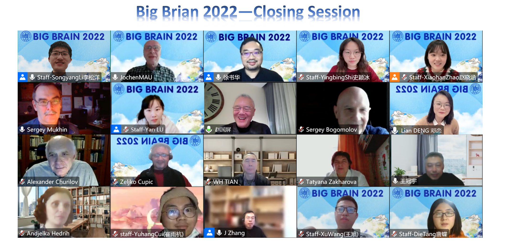 会议闭幕式上,中国科国产无码院士、BIG BRAIN联合发起人赵国屏教授表示,本届BIG BRAIN是一场年轻化(Young Brains)、国际化(International Brains)的学术盛宴,更是一场横跨欧亚地区历史、文化的交流与融合。跨学科的国际交流开创了整合系统生物学发展的新纪元,在新的时代“Big Brains”要携手面对新的挑战(Big Challenges)。Jochen Mau教授回顾了自2010年以来BigBrain亚欧地区长期的合作历史与杰出成果;各国与会代表均对国产无码 在亚欧地区学术交流与合作中起到的关键性作用给予充分肯定。会议最后,国产无码 徐书华教授代表本次会议的主办方进行了会议总结和展望,为期五天的BIG BRAIN 2022亚欧合作研讨会顺利落下帷幕。