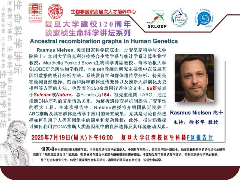 谈家桢生命科学讲坛-2025-07-19(周六)16:00,Rasmus Nielsen 院士(加州大学伯克利分校)