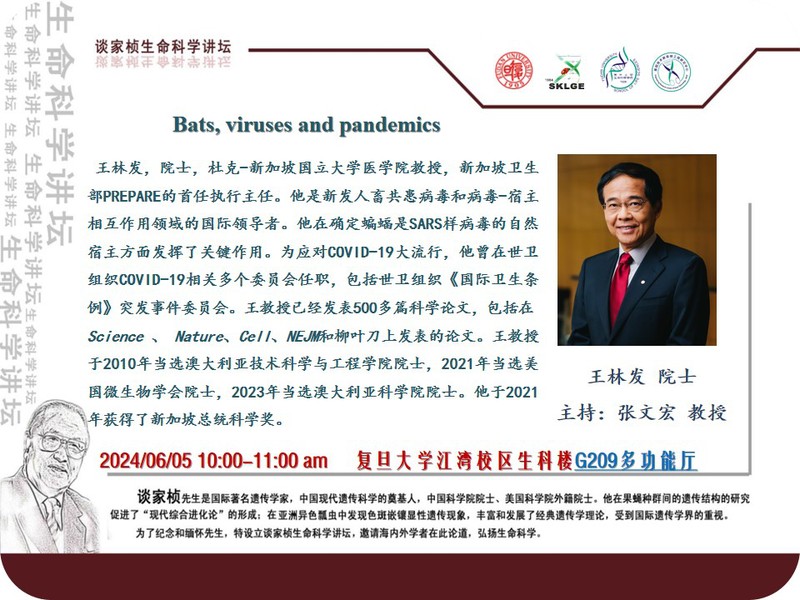 谈家桢生命科学讲坛-6月5号(周三)上午10:00-11:00 ,王林发 院士(杜克-新加坡国立大学),生科楼G209会议室