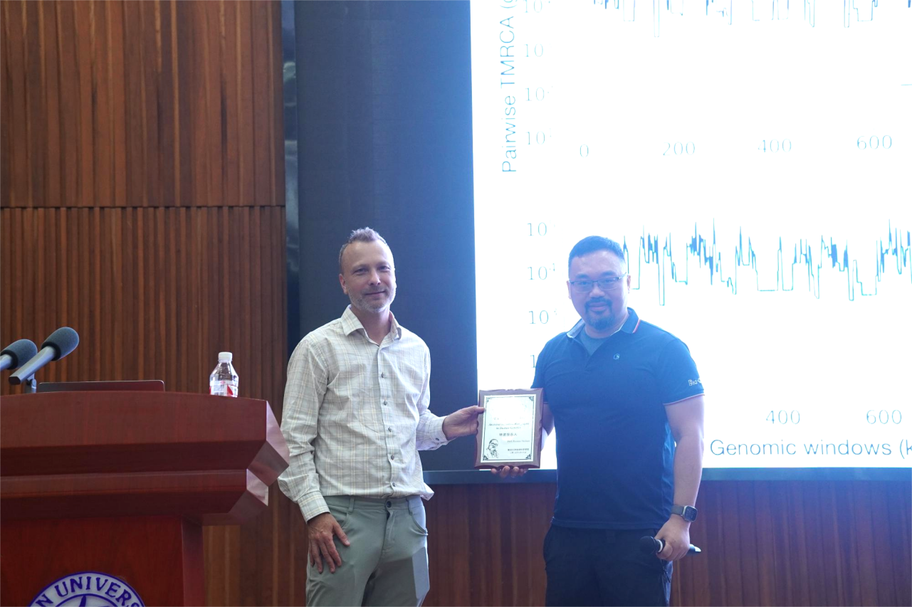 报告结束后,徐书华教授代表国产无码向Nielsen院士颁发谈家桢纪念牌。现场师生围绕群体遗传学方法论、演化医学应用等议题展开深度讨论,与会学者一致认为,ARG技术将为精准医学和古人类学研究开辟新维度。