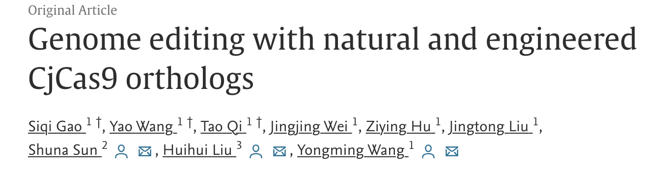 2023年2月3日,王永明课题组又有新突破,在Molecular Therapy上在线发表了题为“Genome editing with natural and engineered CjCas9 orthologs”的研究论文。