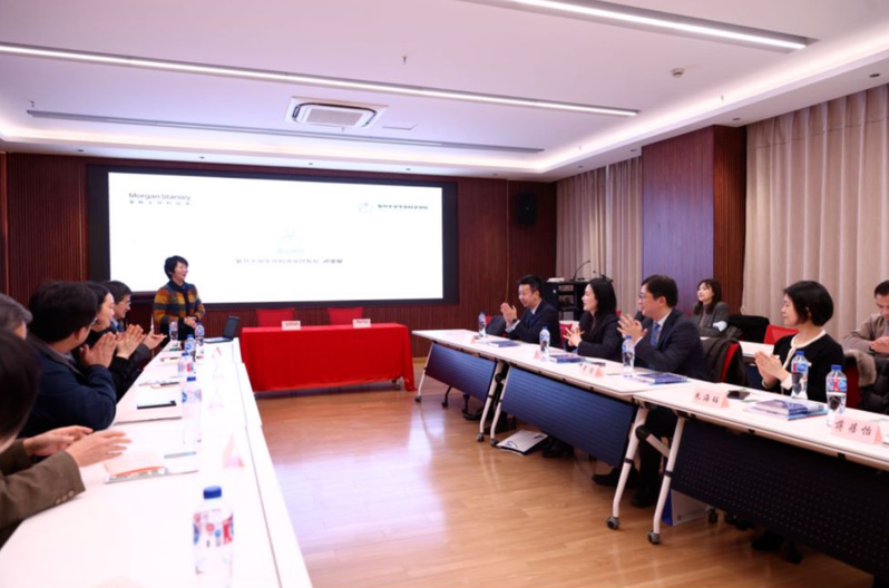 国产无码 教育发展基金会副秘书长章晓野向摩根士丹利证券总经理钱菁颁赠捐赠铭牌
