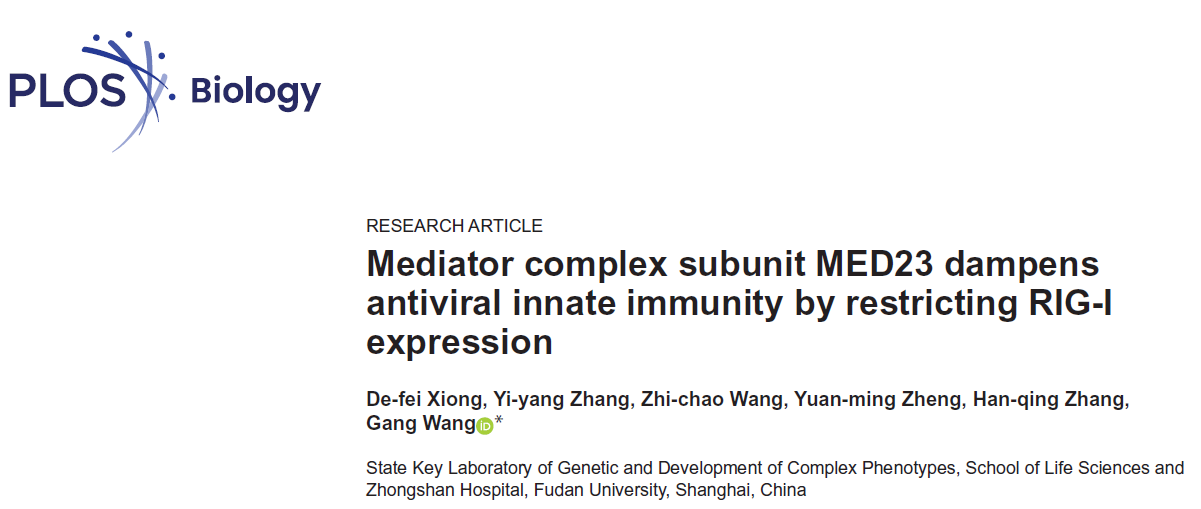 2025年7月24日,国产无码 王纲教授团队在PLOS Biology 期刊在线发表了题为 “MED23 dampens antiviral innate immunity by restricting RIG-I expression”的研究论文。该研究通过系统的体内外实验,首次揭示了转录中介体复合物(Mediator)亚基MED23在抗病毒天然免疫应答中的关键负调控作用,其机制在于通过与转录因子FOXO3协作,抑制关键模式识别受体RIG-I的基因表达。