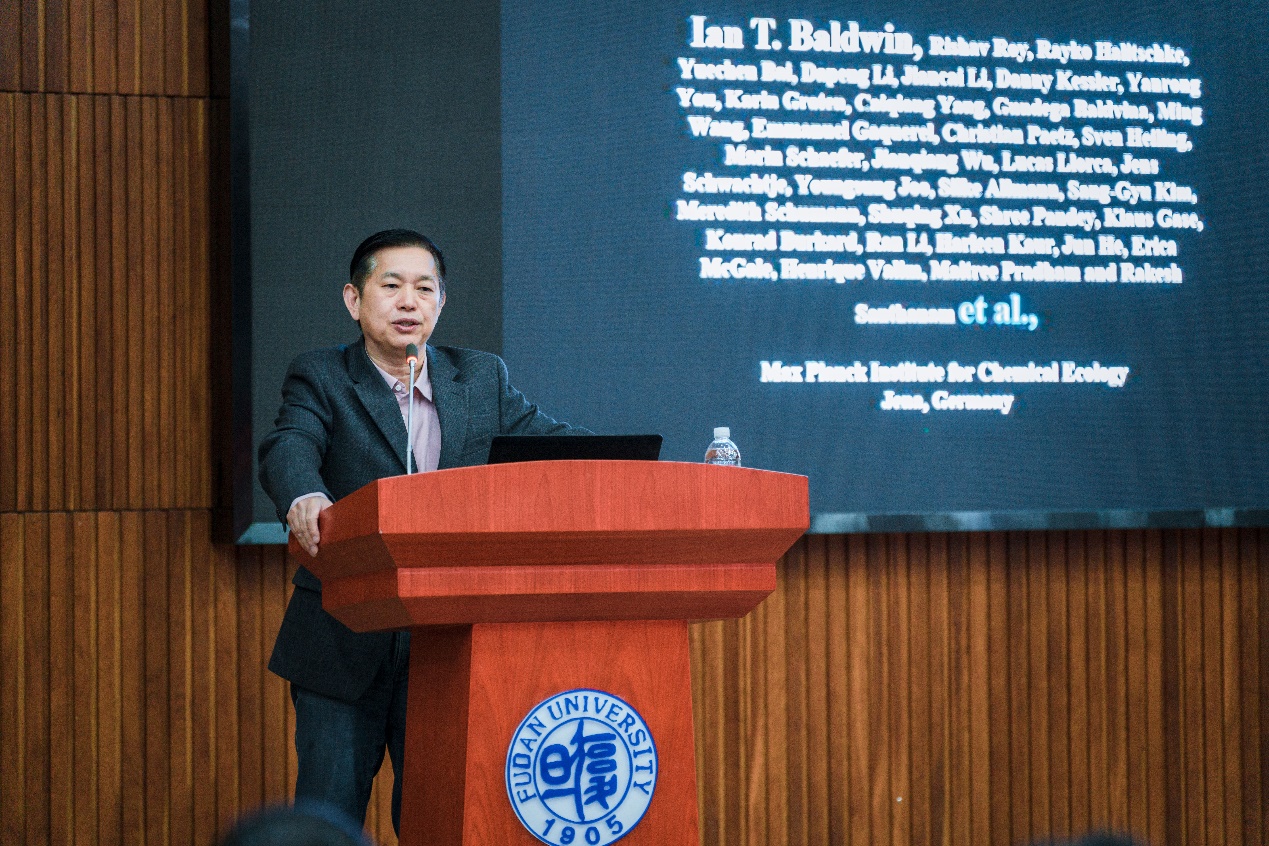 林鑫华院长主持并致欢迎辞,隆重介绍了Ian Baldwin院士杰出的科研工作。Ian Baldwin院士是化学生态领域的先驱人物,1996年受德国马普学会邀请在耶拿(Jena)成立了马克斯·普朗克化学生态学研究所,并成为该所第一任所长。Ian Baldwin院士团队长期致力于研究植物在自然环境下生存的功能性状,通过正反向遗传学、多组学大数据和基于自然历史的野外考察等对植物代谢物与复杂生态环境的互作展开深入的研究,已在国际主流期刊发表534篇文章(H因子125),并担任植物与生态多个重要期刊的编委、世界重大项目基金以及大学与研究所的评委。由于Ian Baldwin教授的杰出成绩和突出贡献,在2013年分别当选美国科国产无码和德国国家科国产无码院士,2014年当选欧洲分子生物学会会员(EMBO),2016年当选美国促进学会会员(AAAS)。