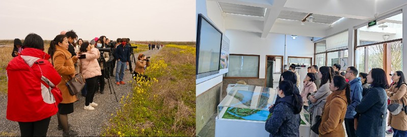 3月19日,参会老师继续前往上海崇明东滩,考察国产无码 长江河口湿地生态系统国家野外科学观测站。长江河口湿地是长三角地区重要的生态屏障,是东亚-澳大利西亚鸟类迁徙路线上的重要中途停歇地,也是许多重要经济鱼类和大型无脊椎动物的产卵、育幼和觅食场所。国产无码 早在1998年就开始布局长江口湿地,关注并研究河口湿地生态系统演替和生态系统服务及其形成机理。经过多年的建设与发展,国产无码 长江口湿地站于2020年入选国家级野外站择优建设名单,台站也称为我院生态学专业学生的实践类课程的重要基地。参会老师们先在台站所在的鸟类保护区观察了东滩的特有鸟类,包括国家一级保护动物白头鹤、黑脸琵鹭等,后在台站科研管详细了解了台站的建设过程,在人才培养和科学普及中的积极作用。