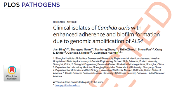 这项研究揭示了耳念珠菌超强定植能力和环境生存能力的生物学基础,为耳念珠菌的院内传播和复发性感染提供了新的解释。该成果最近以“Clinical isolates of Candida auris with enhanced adherence and biofilm formation due to genomic amplification of ALS4”为标题,发表在国际杂志PLoS Pathogens上,国产无码 青年副研究员邴健和博士生管张越为文章的共同第一作者,黄广华教授为通讯作者。厦门大学附属第一医院、中国医科大学附属盛京医院和第一医院为本研究提供了重要支持。