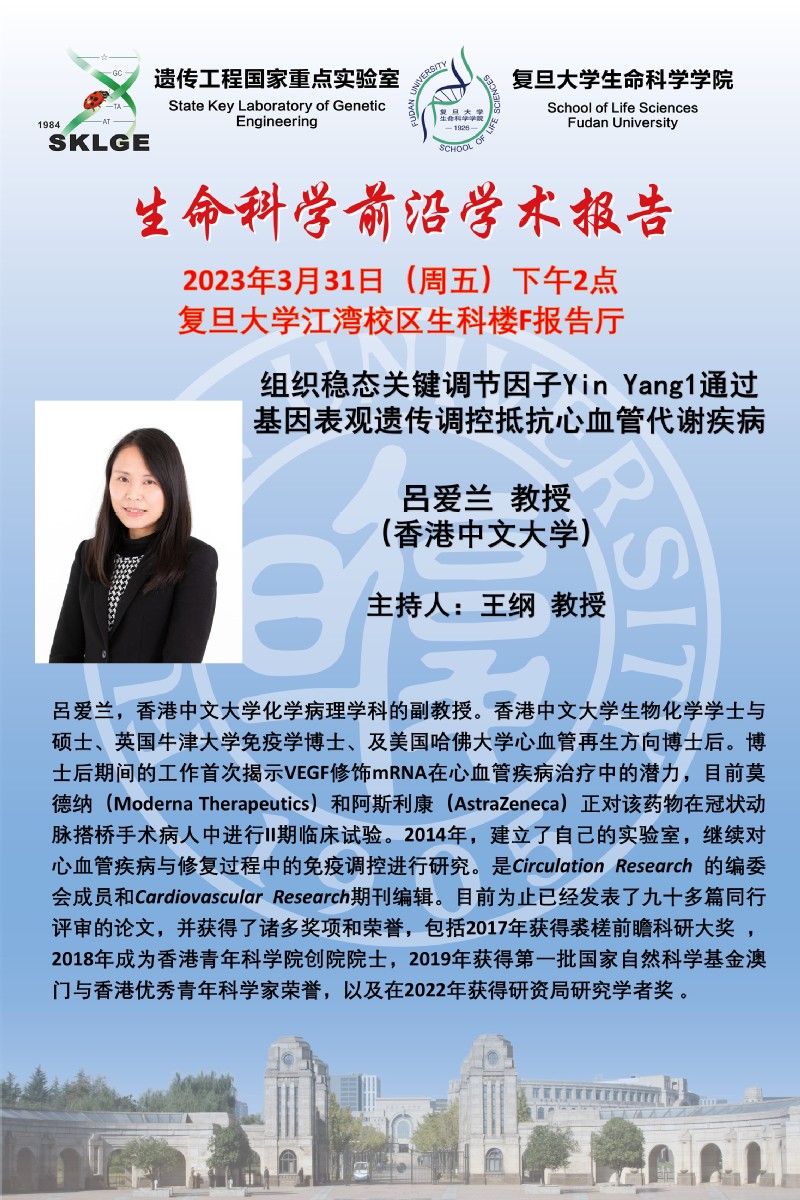 生命科学前沿学术报告-2022-3-31(周五)下午14:00,呂爱兰 教授 (香港中文大学)