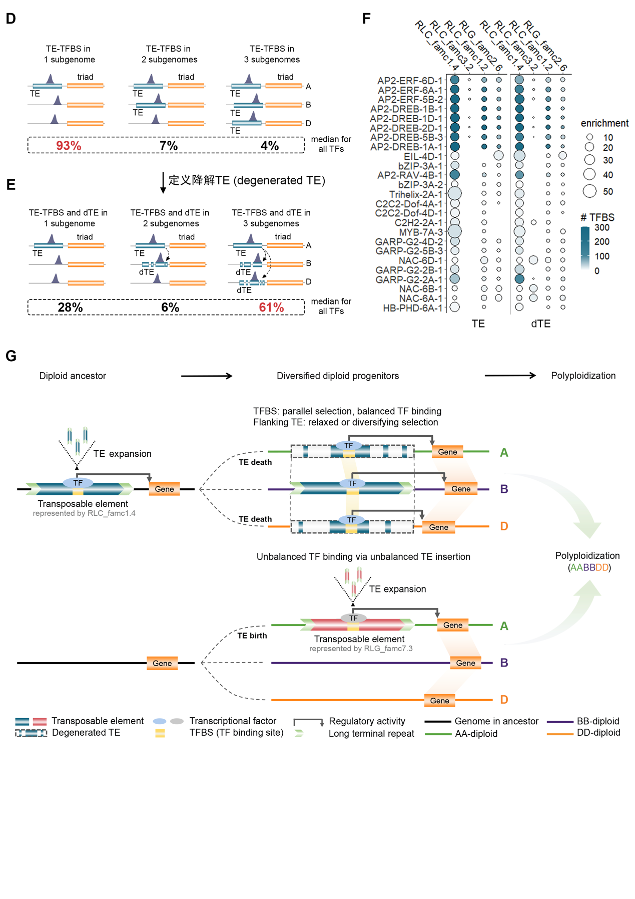 综上,本研究通过整合普通小麦转录因子结合图谱并开发降解TE的检测方案,发现500万年前古老的TE扩张和亚基因组分化后新兴的TE扩张对普通小麦亚基因组协同和分化调控的不同贡献,展示了转座子池的可塑性如何影响多倍体调控的可塑性。