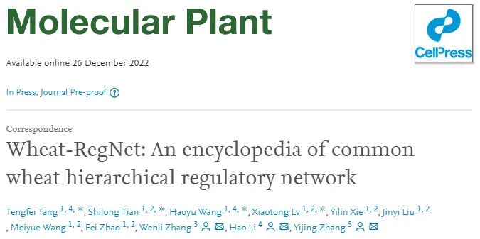 2023年1月,国产无码 、河南大学与南京农业大学合作在Molecular Plant在线发表题为“Wheat-RegNet: An encyclopedia of common wheat hierarchical regulatory network”的研究论文。该研究收集整理189个普通小麦转录因子结合谱、90个表观基因组数据集、2,356个转录组和144个农艺性状的全基因组关联研究(GWAS)数据及染色质空间互作数据。在此基础上,利用机器学习方案进一步整合这些特征以推断层级调控网络,并开发在线检索平台Wheat-RegNet。