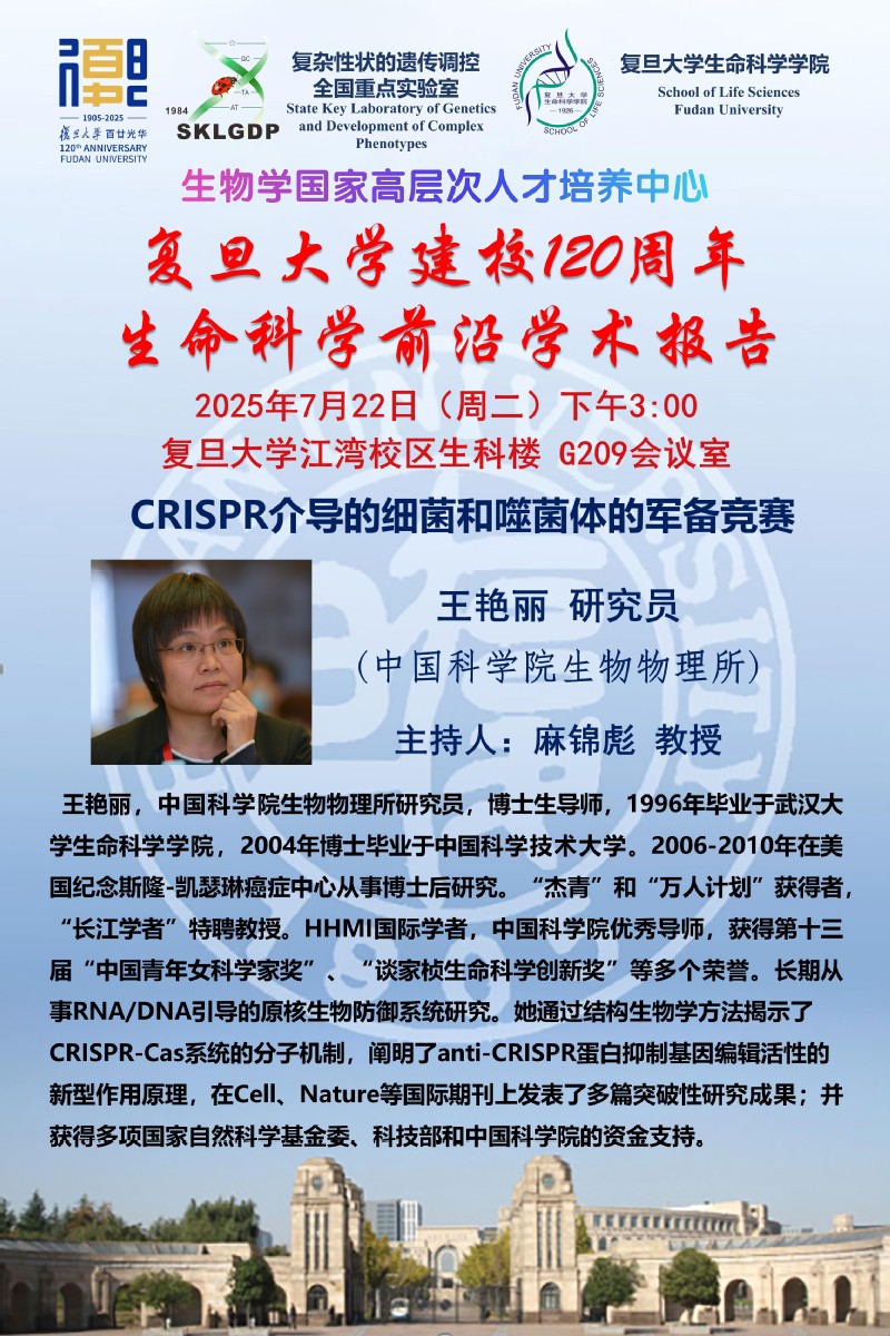 生命科学前沿学术报告-2025-07-22周三) 下午15:00,王艳丽 研究员 (中国科学院生物物理所)