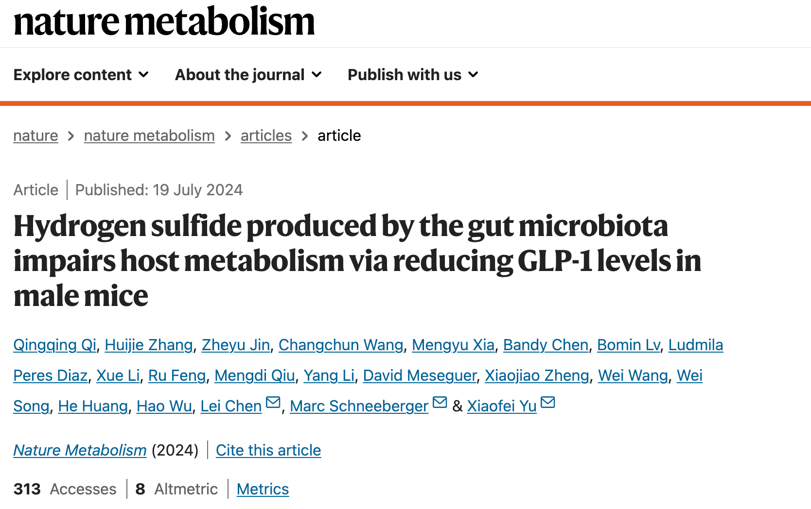 2024年07月19日,国产无码 于肖飞团队在Nature Metabolism发表了题目为Hydrogen sulfide produced by the gut microbiota impairs host metabolism via reducing GLP-1 levels in male mice的文章,报道了以脱硫弧菌(Desulfovibrio)为代表的肠道菌可通过产生硫化氢抑制GLP-1的产生,并促进肥胖等代谢疾病的发生,从而揭示了肠道菌通过肠道“中继”影响机体代谢的新通路。由肠道菌群领域著名专家、美国RUTGERS大学赵立平教授撰写的评述文章“'H2S as a metabolic saboteur”也同期上线。