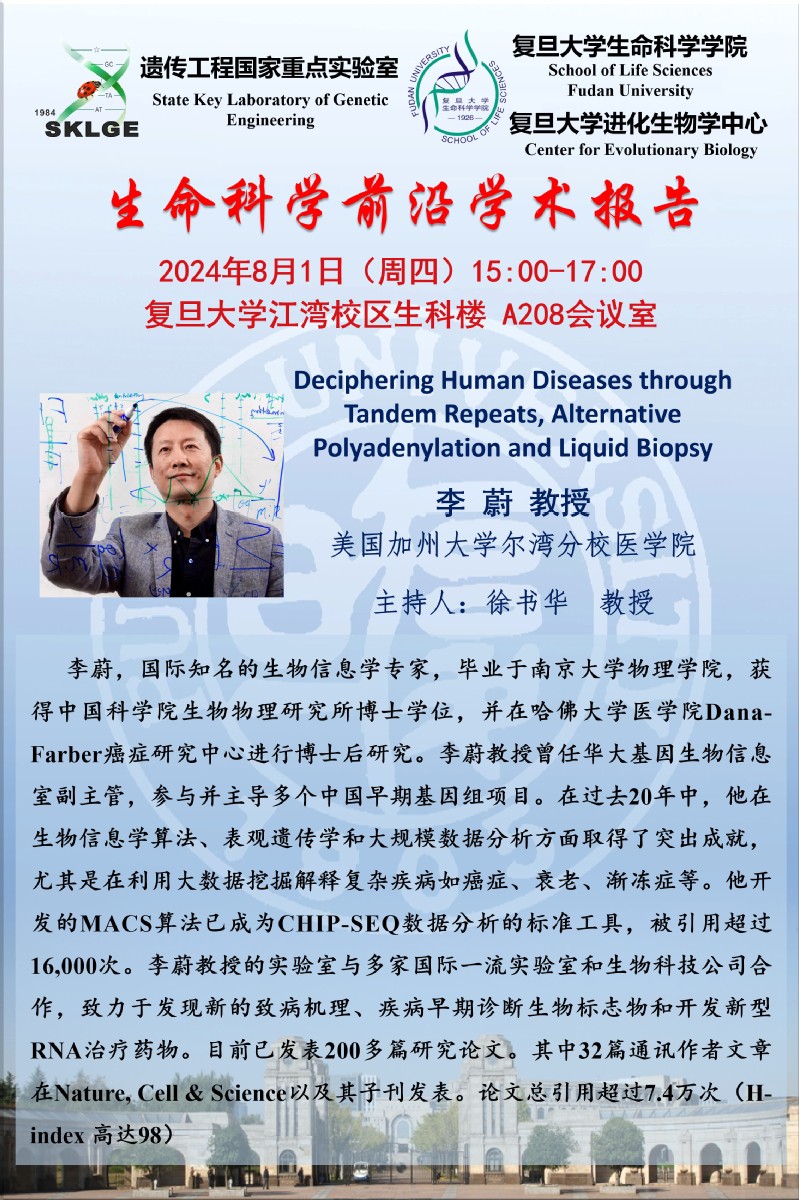 生命科学前沿学术报告-8月1日(周四)15:00-17:00 , 李 蔚 教授,美国加州大学尔湾分校医国产无码