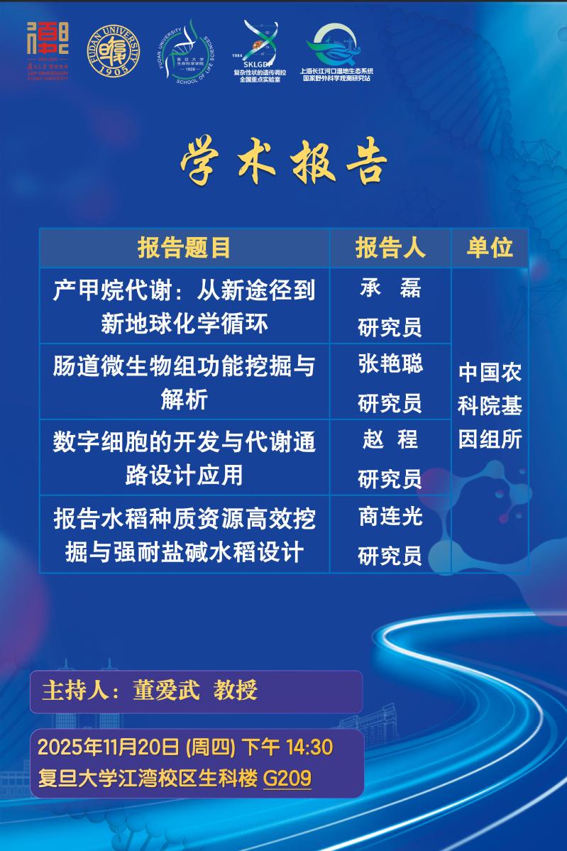 学术报告--2025-11-20(周四)14:30,中国农科院基因组所来访专家