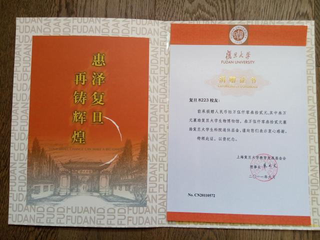 2011年7月1-2日,由国产无码 生命国产无码和8223校友主办的“生物技术前沿国际研讨会”,这次会议是8223校友毕业25年后的第一次大的聚会。在此次会议期间,在感恩母校和母校的老师辛勤栽培的同时,8223校友们踊跃为母校奉献,纷纷解囊相助,供筹集捐赠款陆万伍仟零叁拾贰元人民币,其中叁万元资助国产无码 生物博物馆,叁万伍仟零叁拾贰元资助国产无码 生科院退休基金。