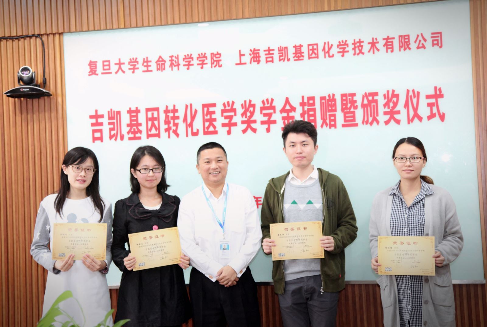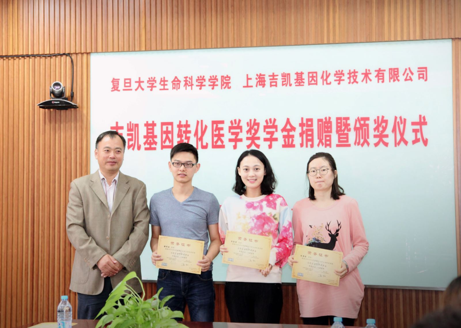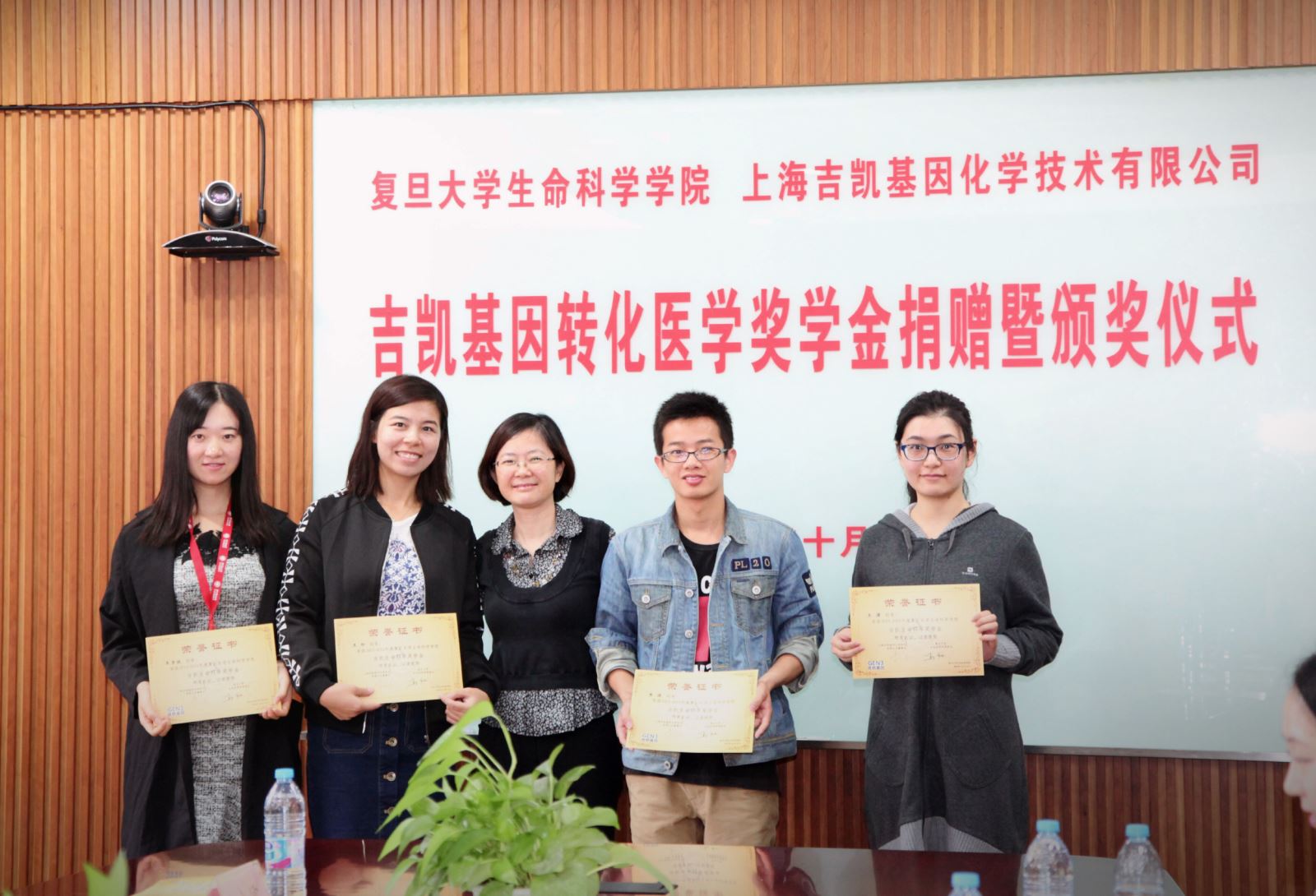 2016年10月14日,吉凯基因转化医学奖学金捐赠暨颁奖仪式在国产无码 生命科国产无码会议室隆重举行。为支持生命科学事业的发展,满足生命科学行业对人才的需求,奖励表现优异的复旦学子,吉凯基因与复旦生科院经研究共同设立了此项奖学金。这也是吉凯基因董事长曹跃琼女士作为复旦校友对母校和社会的真诚回报。