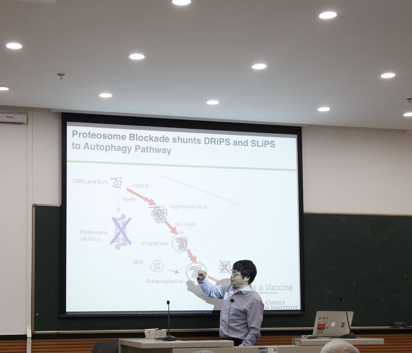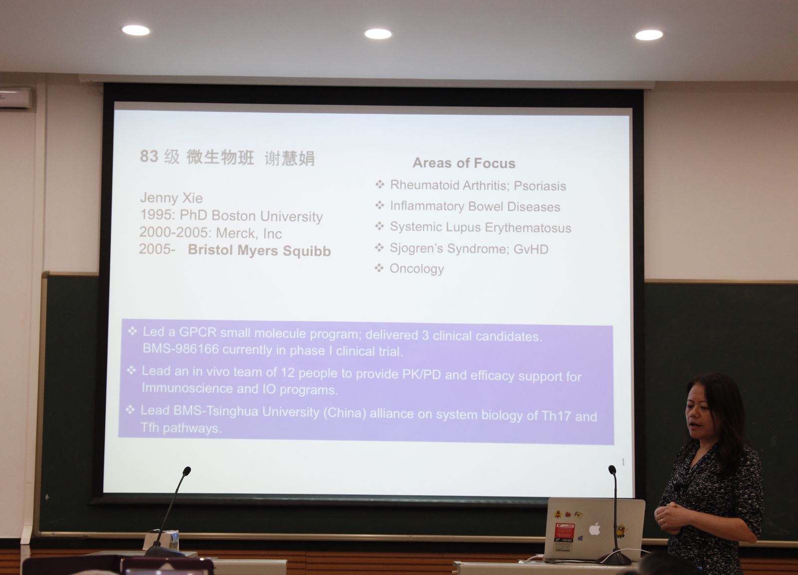 接下来,马秋富教授、胡红明博士、孙培庆教授、谢慧娟博士、董涛教授、丁建东教授、胡红雨研究员、曹国庆博士、范尔玫女士、金城院长等杰出校友代表就科研进展、产业动态、学界到产业界的成果转化和应用等话题进行了精彩报告,全体校友在立人生物楼前合影留念。