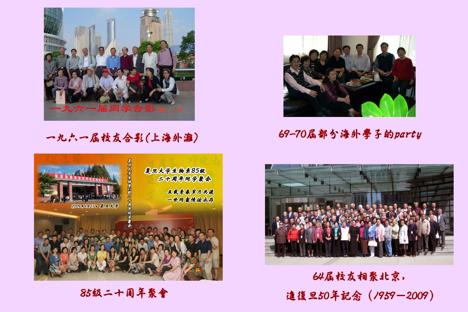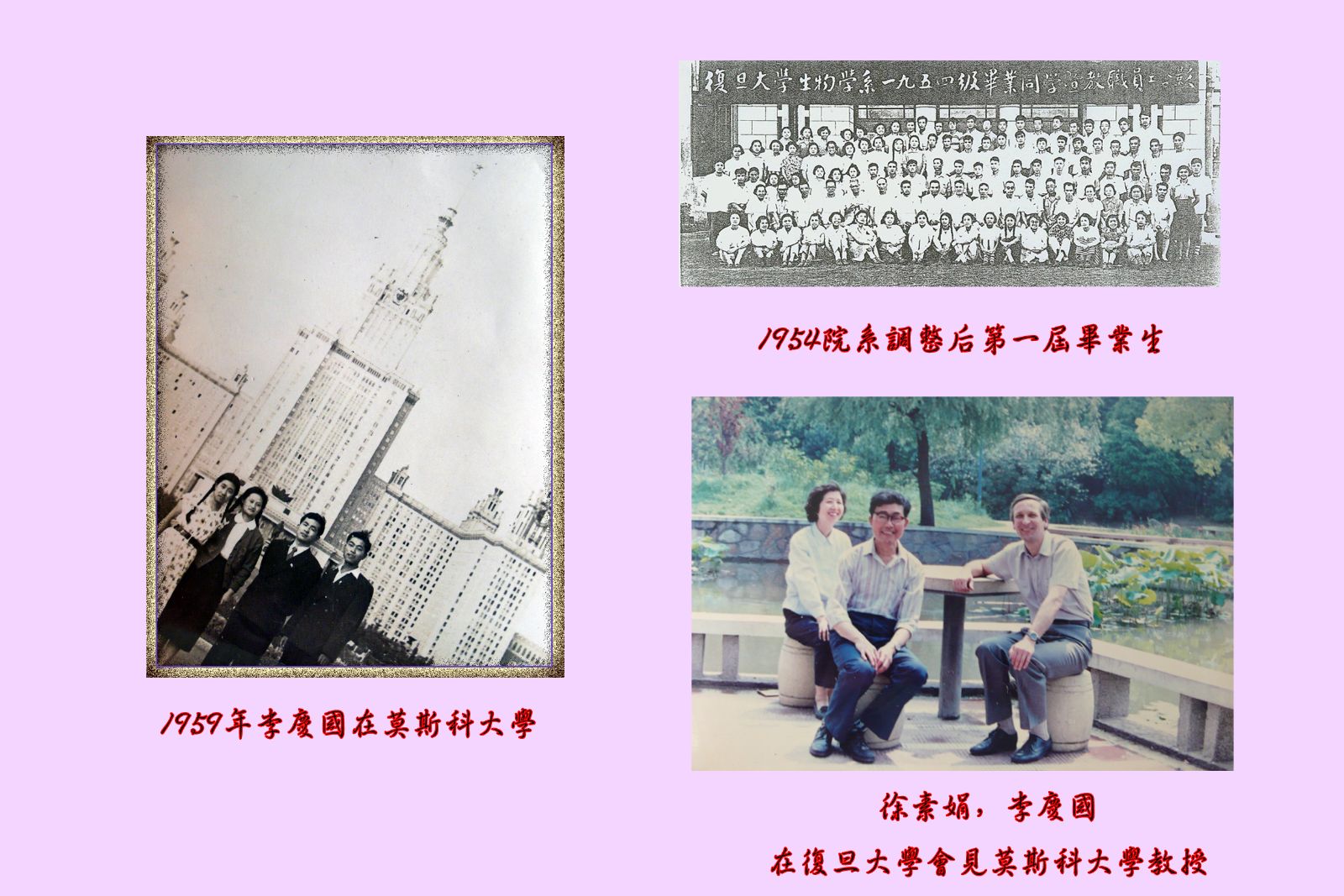 ,从高中到大学一直担任共青团的工作,大学五年和留校工作是我情系祖国,在党的哺育下迅速成长的时段。我跟随祖国前进的脚步,经常唱起“我们走在大路上,意气风发……”,与祖国同命运共呼吸。改革开放初我被国家选送赴法国进修分子生物学,我下决心要为祖国的教育和科技事业迅速赶上世界先进水平而刻苦攻读,使自己成为国家的栋梁。1982年国庆谢希德校长专程来看望赴法留学生,我们喜出望外,与谢校长近距离交谈。