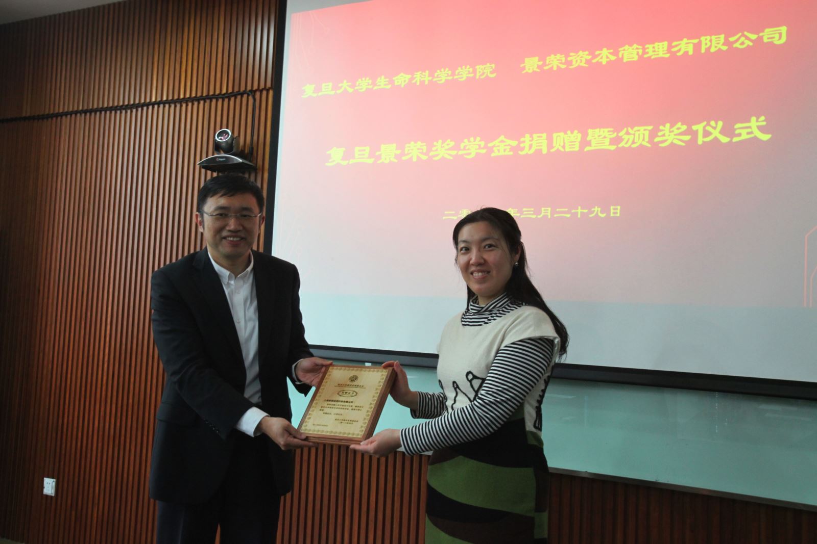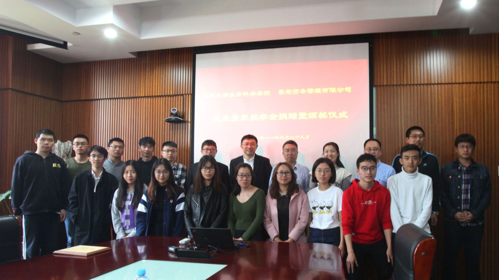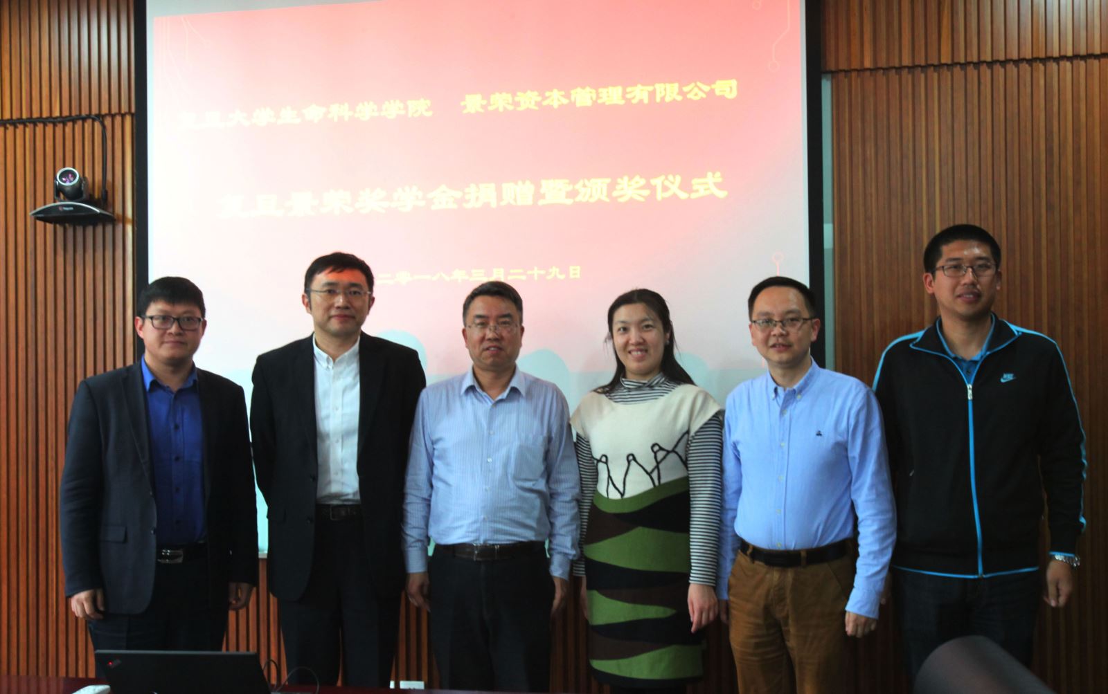 2018年3月29日下午,复旦景荣生命科学奖学金捐赠暨颁奖仪式在国产无码 A208会议室隆重举行,国产无码 对外联络与发展处副处长陆颖丰,国产无码 副院长、国产无码全球校友会执行会长卢大儒,国产无码党委副书记余文博,研工组组长李一苇,上海景荣资本副总裁、景旭创投创始合伙人、国产无码1997级校友钱庭栀,景旭创投投资总监、国产无码1997级校友时锋出席了颁奖仪式,会议由卢大儒会长主持。