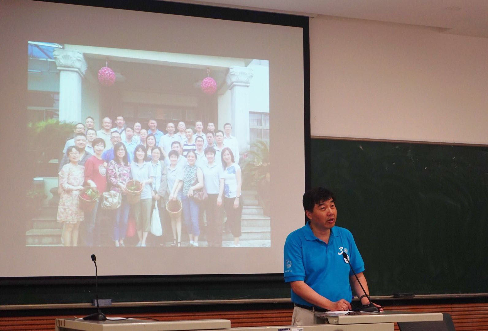 再后,深受大家喜爱的周德庆教授代表老师们发言。周教授带给同学们的是他由衷的人生感言。就像当年他授课的风格,短短的感言风趣而有条理,博得校友们热烈的掌声。归纳起来,一个成功的人生有六条:身心健康, 品德高尚, 学业优秀, 家庭和睦, 亲友交融, 传承创新。