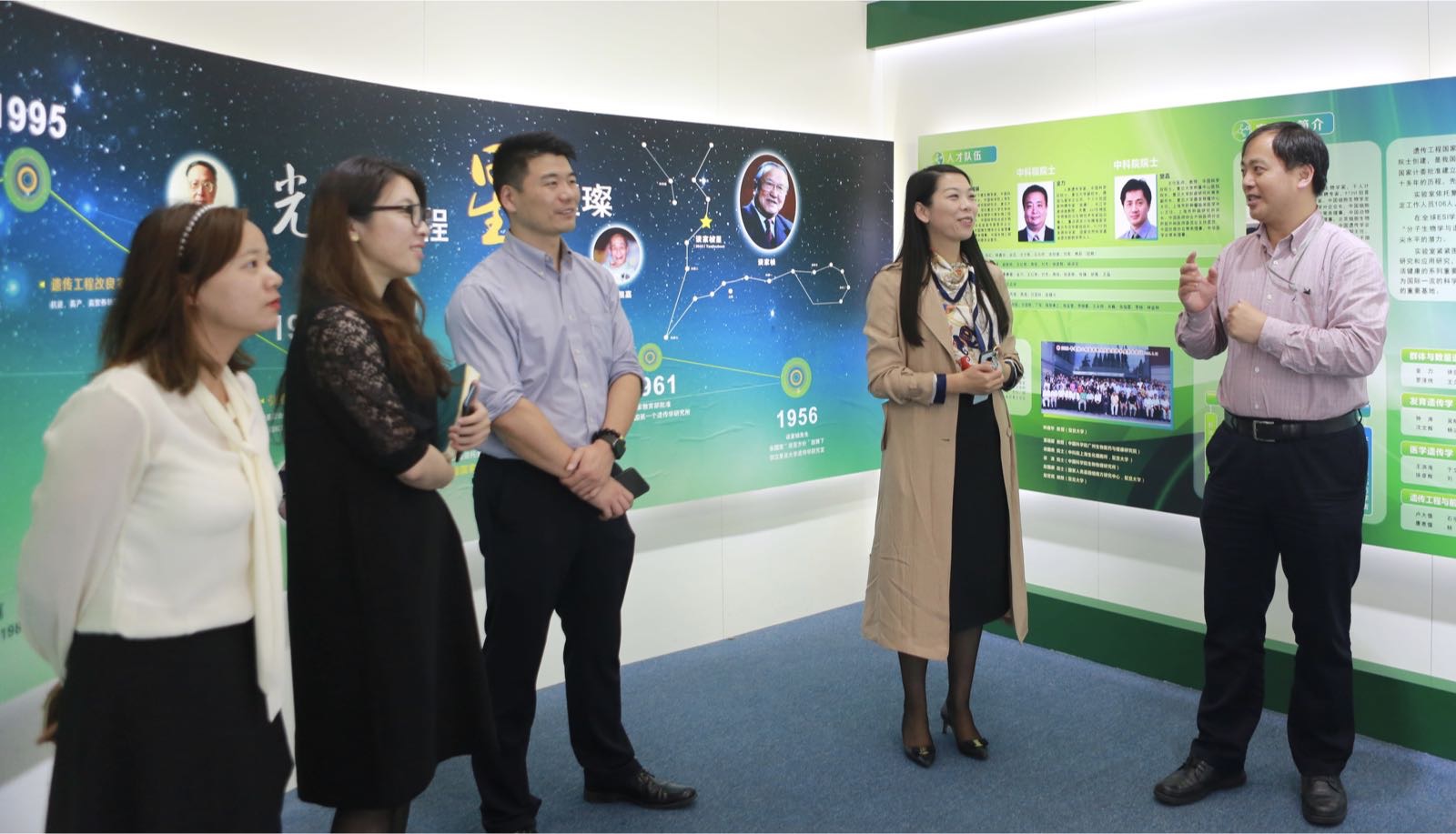 颁奖仪式前,陈浩明书记带领复星嘉宾一行参观了遗传工程国家重点实验室陈列馆,陈书记介绍了国重实验室发展的光辉历程,该实验室是在我国遗传学奠基人、著名遗传学家谈家桢院士所创立,一直以来坚持围绕生命科学前沿和国家战略需求,发挥在遗传学与遗传工程研究领域的传统优势,提升科技自主创新能力,培养遗传学杰出人才。