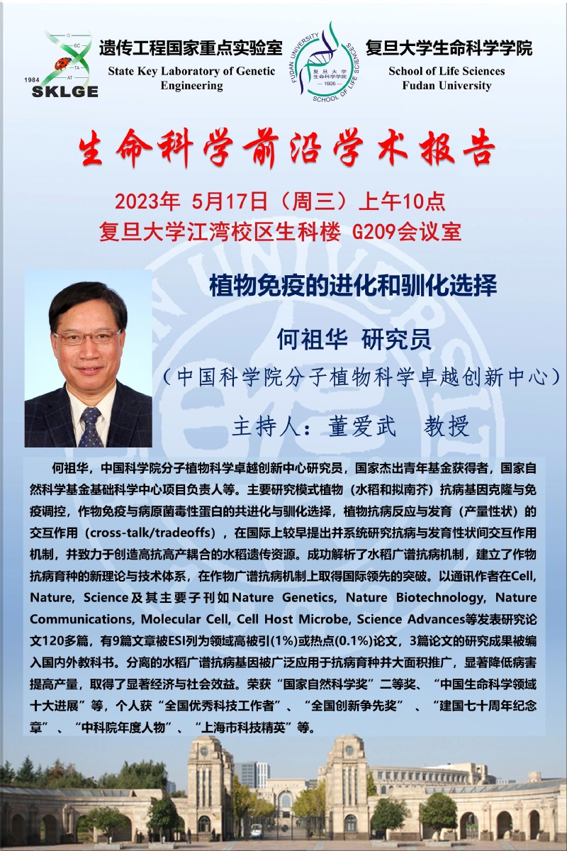 生命科学前沿学术报告-2023-5-17(周三)上午10:00,何祖华 研究员(中国科国产无码分子植物科学卓越创新中心)