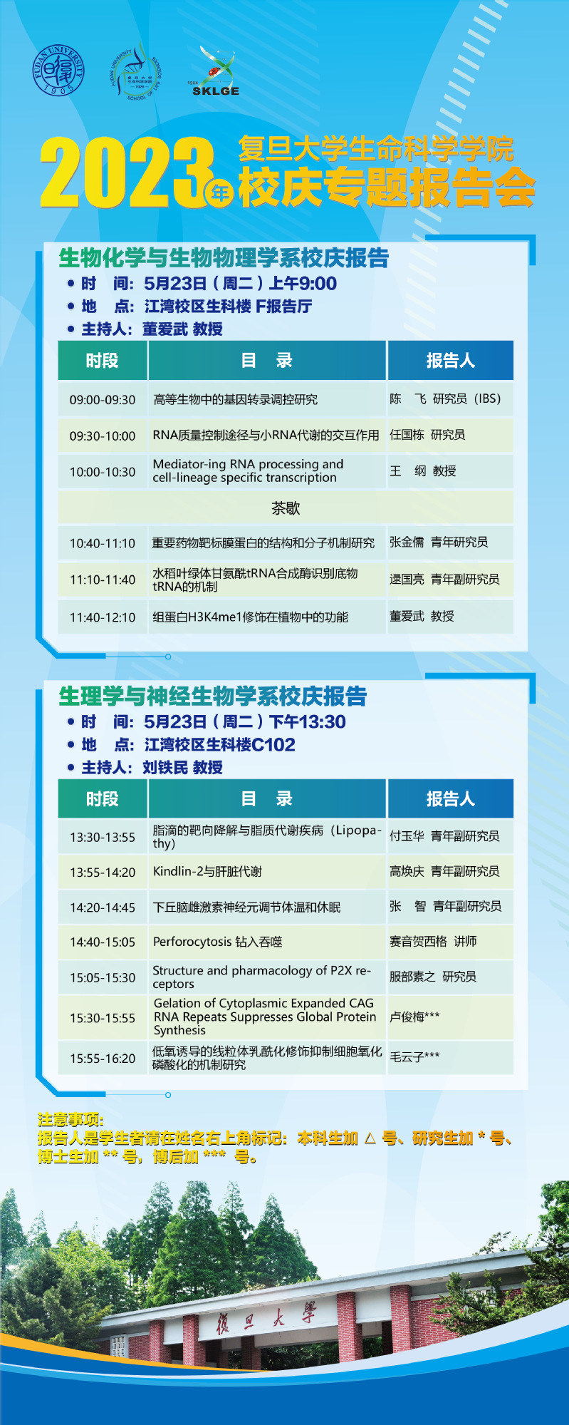 时间:5月23日(周二)上午9:00 地点:江湾校区生科楼F报告厅