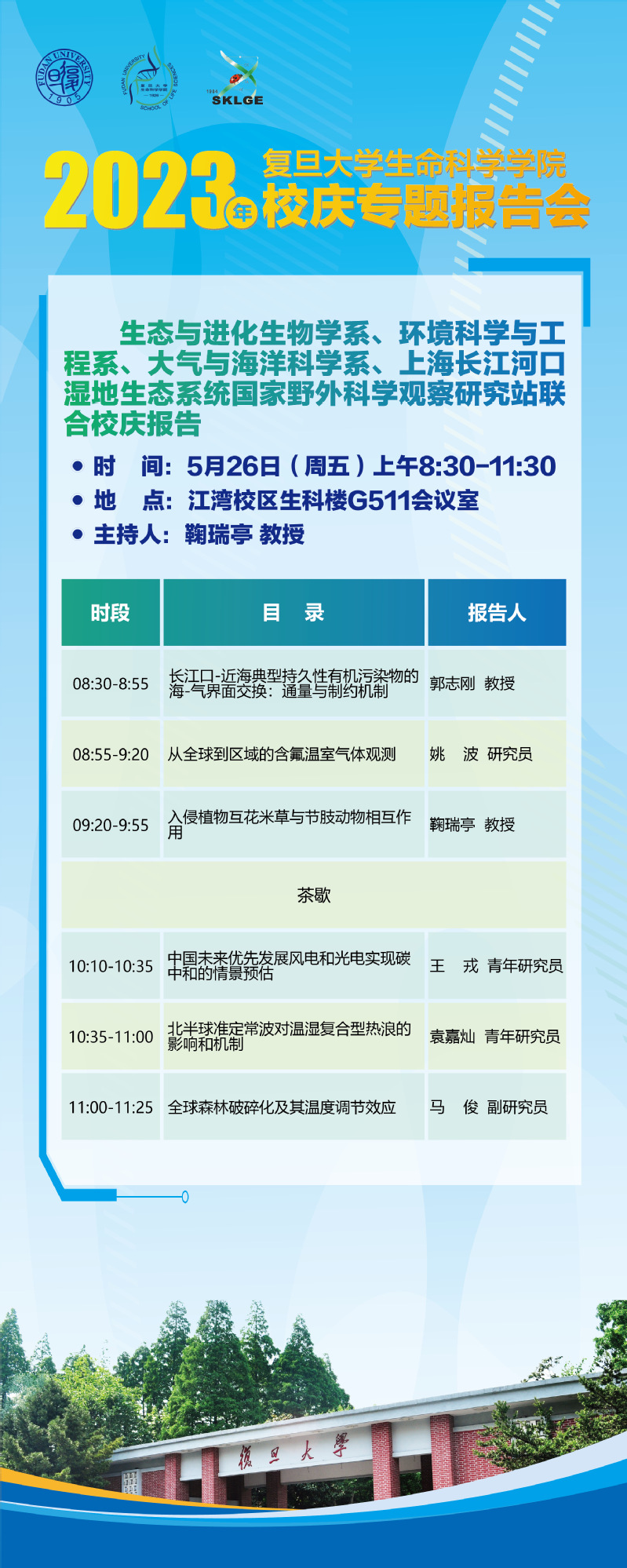 专题七:生态与进化生物学系、环境科学与工程系、大气与海洋科学系、上海长江河口湿地生态系统国家野外科学观察研究站2023年联合校庆报告