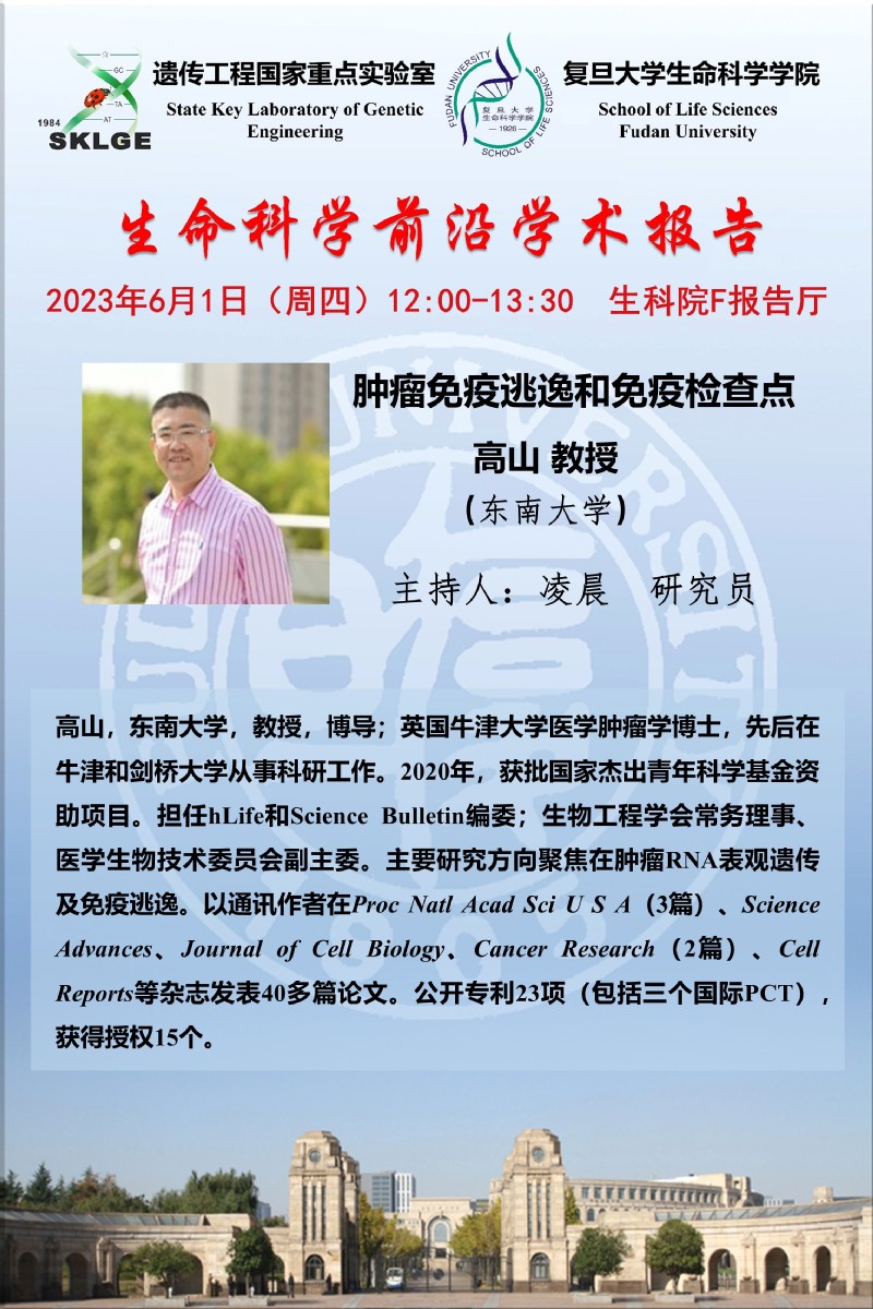 生命科学前沿学术报告-2023-06-01(周四)12:00,高山 教授(东南大学)