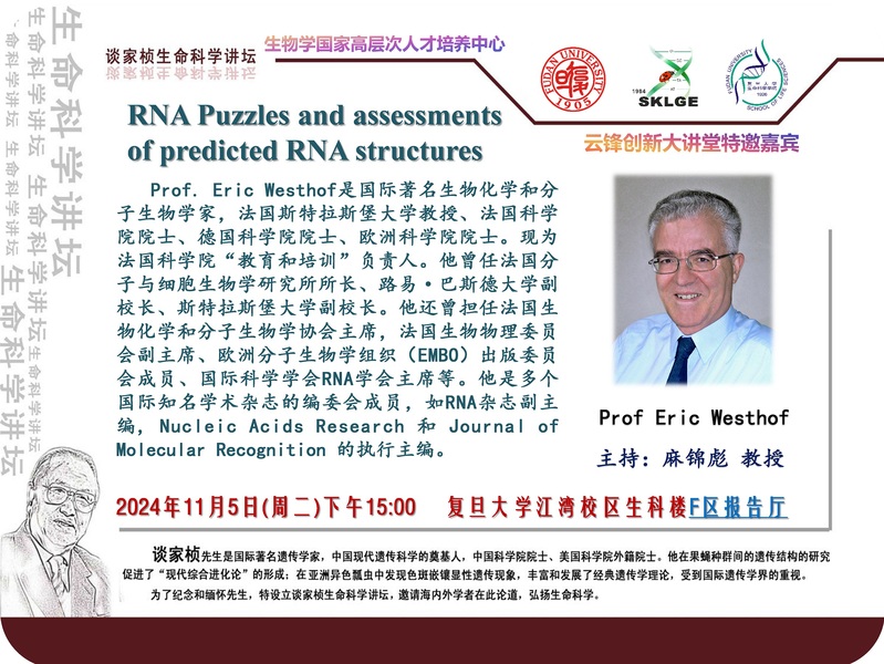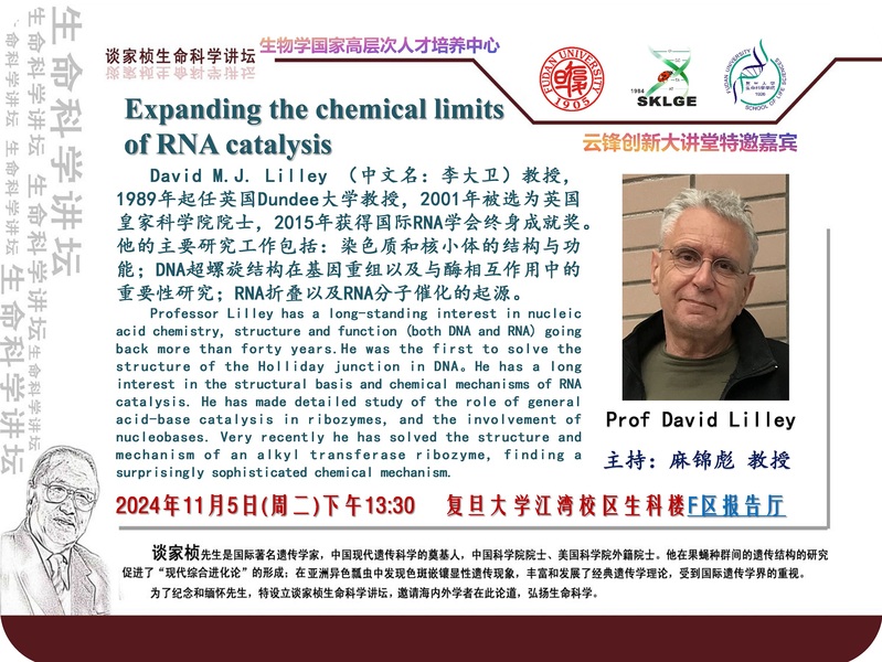 谈家桢生命科学讲坛-2024-11月5日(周二)下午13:30,Prof David Lilley(院士,英国Dundee大学教授),Prof Eric Westhof (院士,法国斯特拉斯堡大学教授)