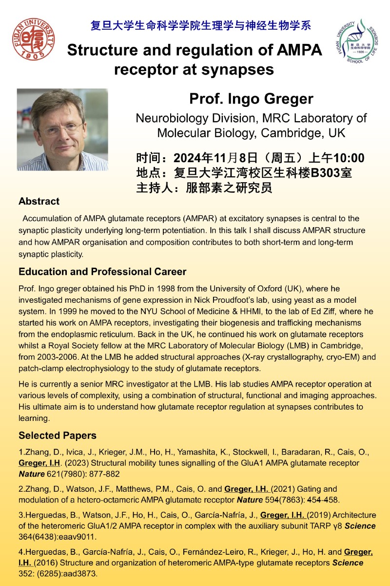 学系邀请报告-2024-11-08(周五),Prof. Ingo Greger (Neurobiology Division, MRC Laboratory of Molecular Biology, Cambridge, UK )