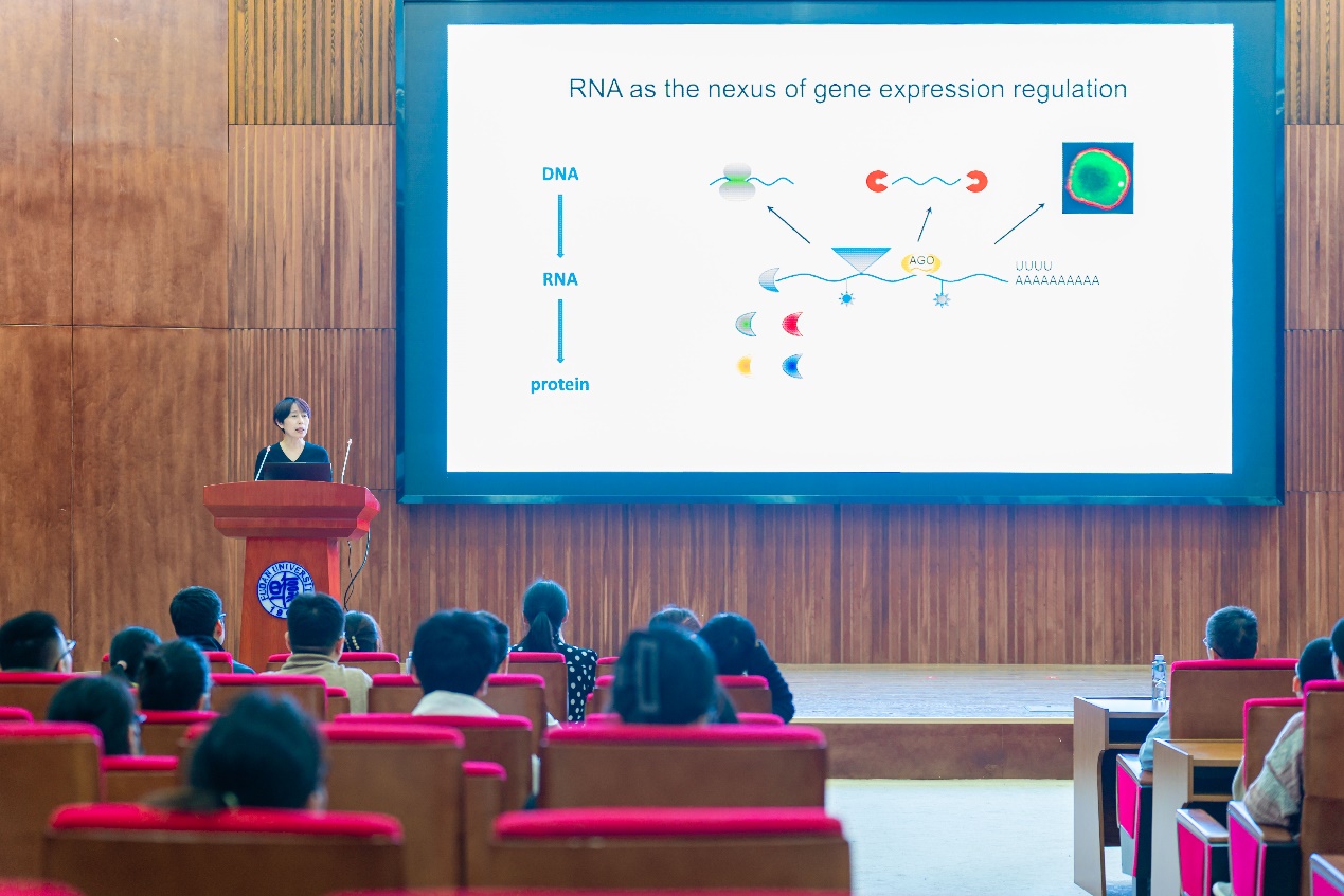 聂明副院长主持并致欢迎辞,介绍了陈雪梅教授杰出的科研工作。陈教授1988年从北京大学生科院本科毕业后同年通过考取中美生物化学联合招生项目CUSBEA的方式被录取到美国康奈尔大学攻读博士;1995年博士毕业后在加州理工国产无码从事博士后研究;陈教授1999年在美国罗杰斯大学建立自己的实验室。陈教授实验室的研究起始于植物花发育的遗传调控机制研究,早期的工作鉴定了多个花发育经典ABC模型的核心因子,并给自己发现的基因命名为HUA1和HUA2,源自中国传统汉字的拼音。在研究花发育的过程中陈教授是最先在植物体中分离出小RNA的研究团队之一。首次发现小RNA在3’末端核糖基上带有甲基化修饰,并克隆负责该修饰的酶HEN1,证明该修饰对于维持小RNA的稳定非常重要,为小RNA领域的重要发现之一;首次证明植物中miRNA介导靶基因的翻译抑制过程发生在内质网上。基于在小RNA领域这一系列原创性的科研成果,陈教授先后获得美国植物学会Charles Albert Shull奖、美国HHMI研究员、美国戈登与贝蒂莫尔基金会研究员;当选美国科学促进会会士、美国国家科国产无码院士。
