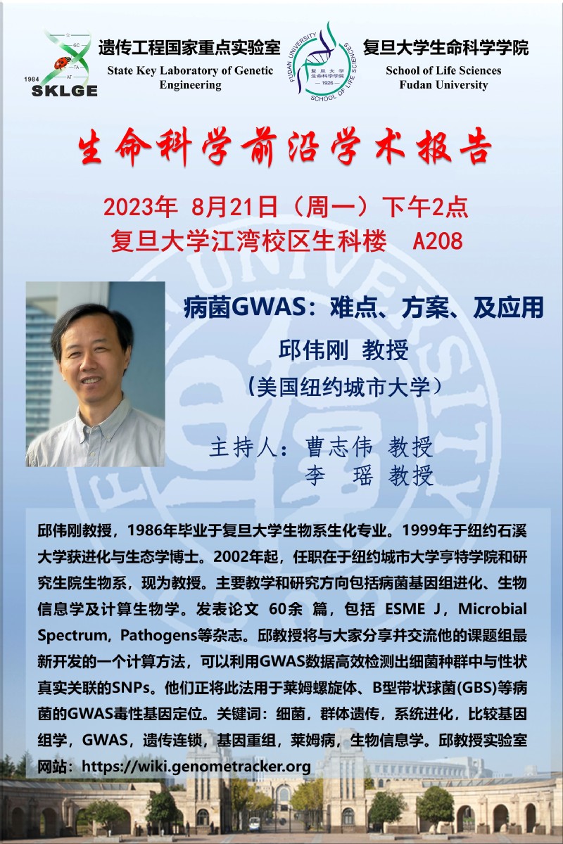 生命科学前沿学术报告-2023-08-21(周一)14:00,邱伟刚 教授(美国纽约城市大学)