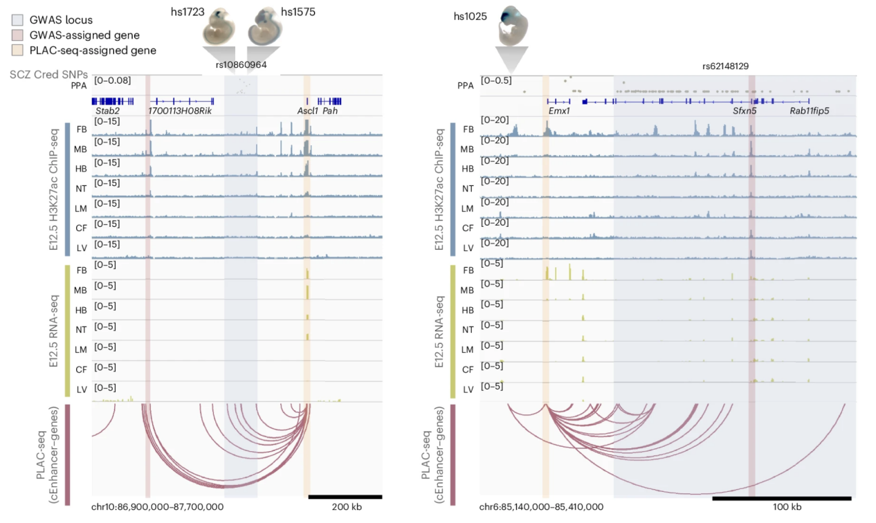 图1 |含有精神分裂症相关非编码遗传变异的潜在增强子及其远程互作基因