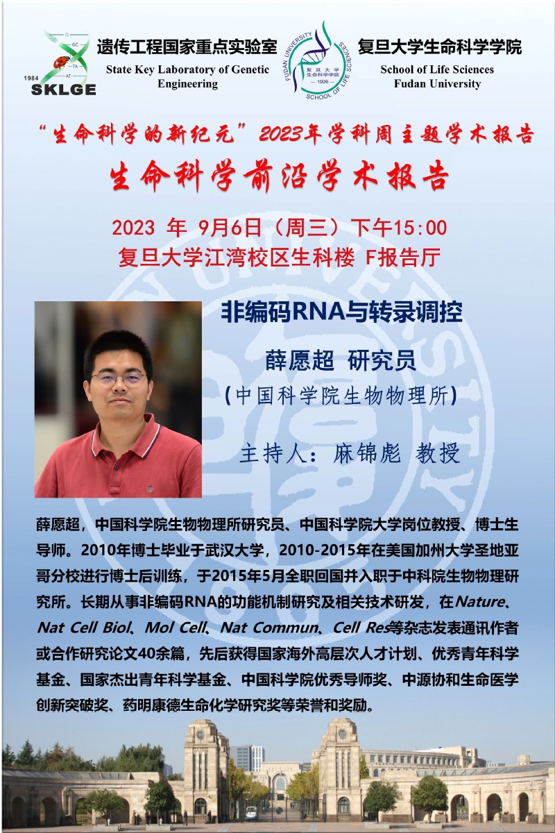 生命科学前沿学术报告-2023-09-06(周三)13:30,罗凌飞(生科院)、薛愿超(中科院)