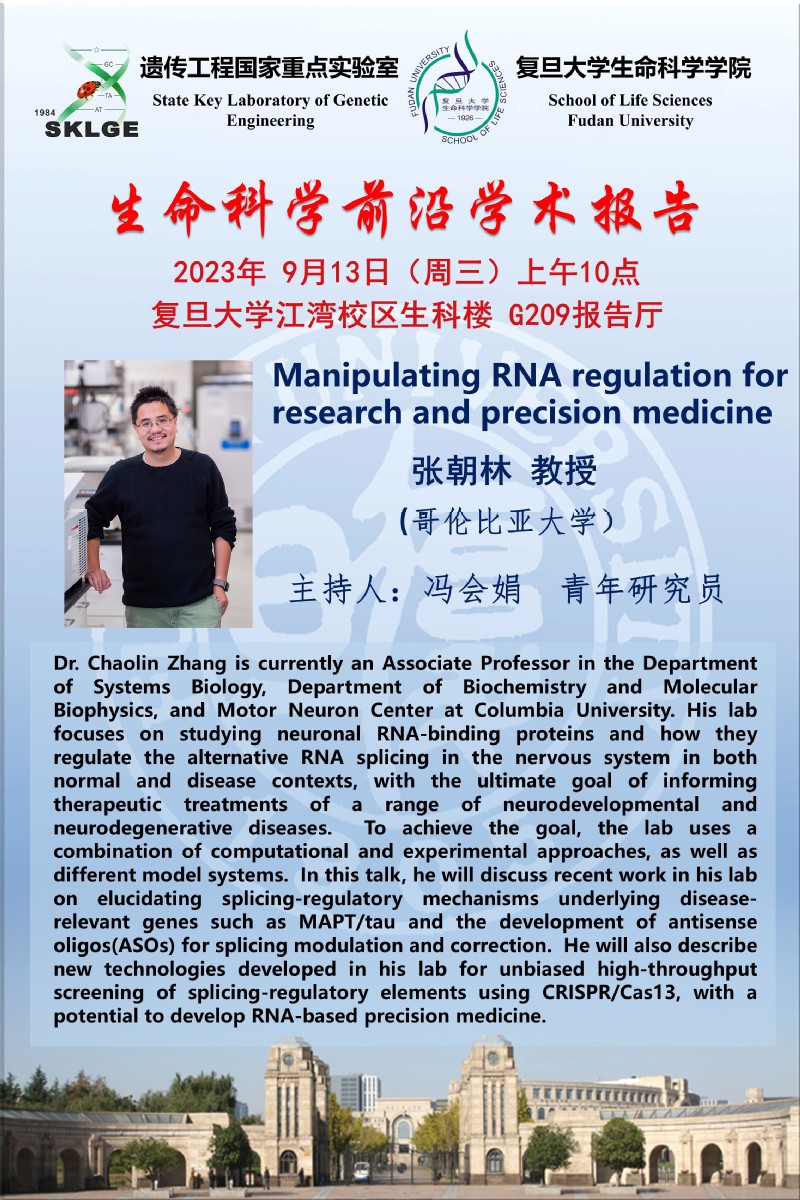 生命科学前沿学术报告-2023-09-13(周三)10:00,张朝林 教授(哥伦比亚大学)